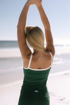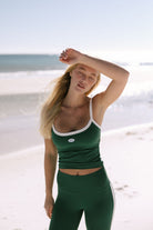 Details: Contrast hem athletic tank top! The tank is fitted and offers light support. It has removable padding.